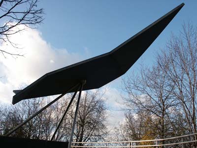 escultura de hormigón señala el acceso a la parte