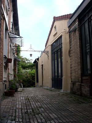 decena de casas de una o dos plantas, bordando una callecita adoquinada.